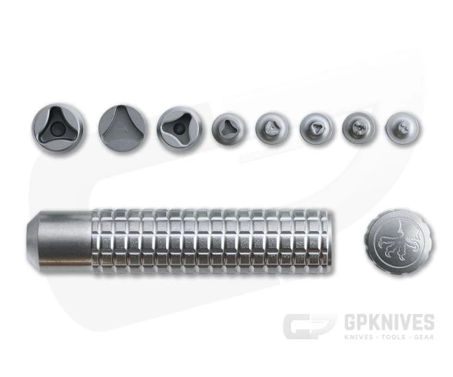 Microtech Knives has always set the standard for high-end American cutlery – from handles and blades down to their proprietary hardware. All Microtech screws are proprietary and high demand for end-user bits has driven Microtech to produce their new Tool Kit. Perfect for users who want to clean and maintain their Microtech knives themselves, the 303 stainless steel driver and 8 interchangeable bits span various Microtech knife models and years. This version comes with a fine satin finish.