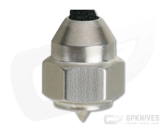 A finely machined mace head bead delivers added style to your EDC gear thanks to Patrick Ober of Ober Metalworks. A setscrew design makes for easy replacement of the installed black paracord of this ready-to-use custom lanyard. This solid Titanium version comes with a 9/16 inch Hex mace head with a tumbled finish.