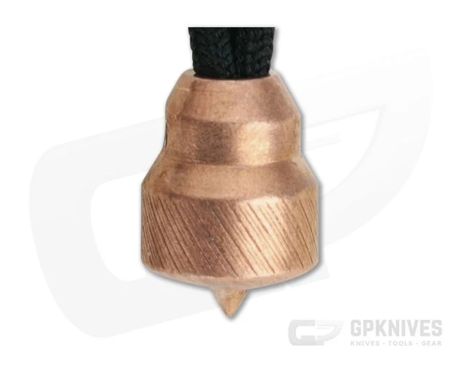 A finely machined mace head bead delivers added style to your EDC gear thanks to Patrick Ober of Ober Metalworks. A setscrew design makes for easy replacement of the installed black paracord of this ready-to-use custom lanyard. This solid copper version comes with a round mace head with a fine machine texture.