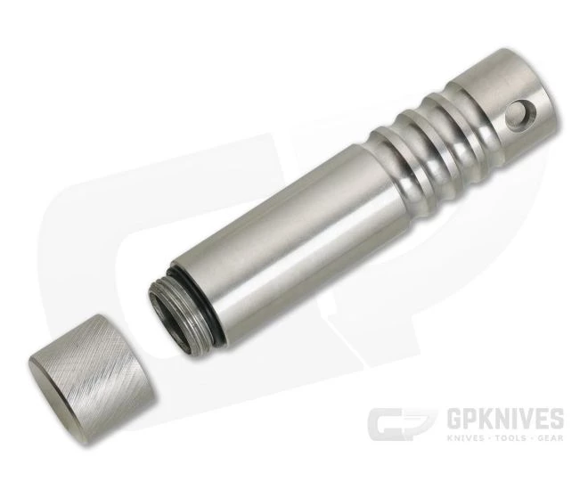 Patrick Ober of Ober Metalworks offer a perfect solution to safe, secure, small item storage with his Titanium Tube Vault. Precision machined, this minimalist tube has a knurled, threaded end cap which o-ring seals to the body. Milled groove offer traction when opening and closing while a lanyard hole offers optional added security.