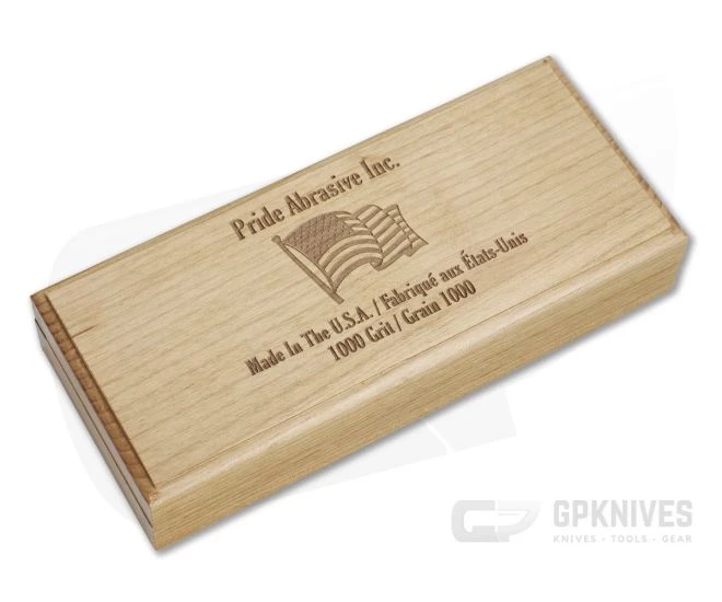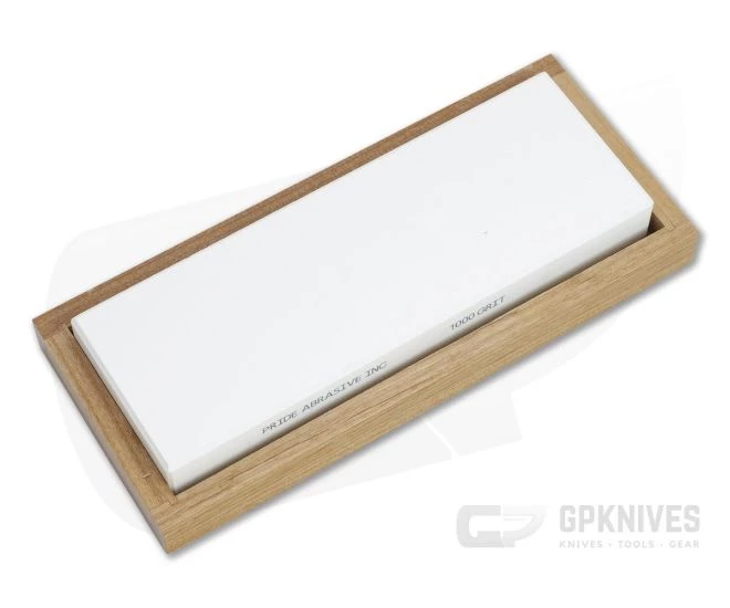 The 1000 Grit Pride Abrasive 8″ Aluminum Oxide Water Stone is made from high quality bonded aluminum oxide. The 1000 Grit is a good place to start for general sharpening when you don’t have edge damage and delivers a coarse edge for aggressive slicing on a plain edge blade. This one comes with a high quality wooded box for display or storage.