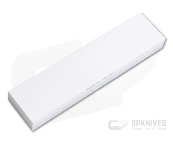 The 1000/6000 Dual Grit Pride Abrasive 8″ x 2″ Aluminum Oxide Water Stone is made from high quality bonded aluminum oxide. The more compact size of the 2″ wide stone offers a more convenient and portable size for travel. The 1000 Grit is a good place to start for general sharpening when you don’t have edge damage and delivers a coarse edge for aggressive slicing on a plain edge blade. 6000 Grit is a fine finishing stone for general sharpening delivering a fine satin finished edge fast.