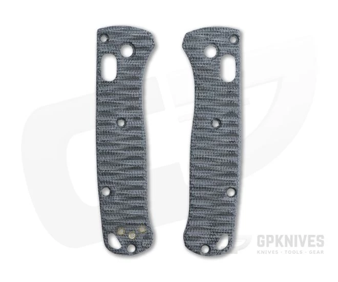 Custom-made handle scales with an Anso-style ‘Grooved’ pattern are milled to fit perfectly on your Benchmade Mini Bugout 533 folder. Included is one set of scales. No hardware or tools included. Use original hardware for assembly. Threaded brass inserts are set up for right hand, tip-up carry only. This version comes in black Micarta.