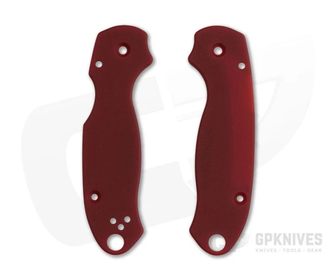 Custom-made Smooth Red G10 handle scales are milled to fit perfectly on your Spyderco Para(military) 3 folder. Included is one set of scales. No hardware or tools included. Use original hardware for assembly.