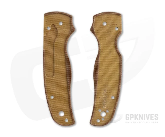Custom-made natural canvas Micarta handle scales are milled with Anso-style texture for traction and designed to fit perfectly on your Spyderco Shaman folder. Included is one set of scales. No hardware or tools included. Use original hardware for assembly. Set up for right hand, tip-up carry only.