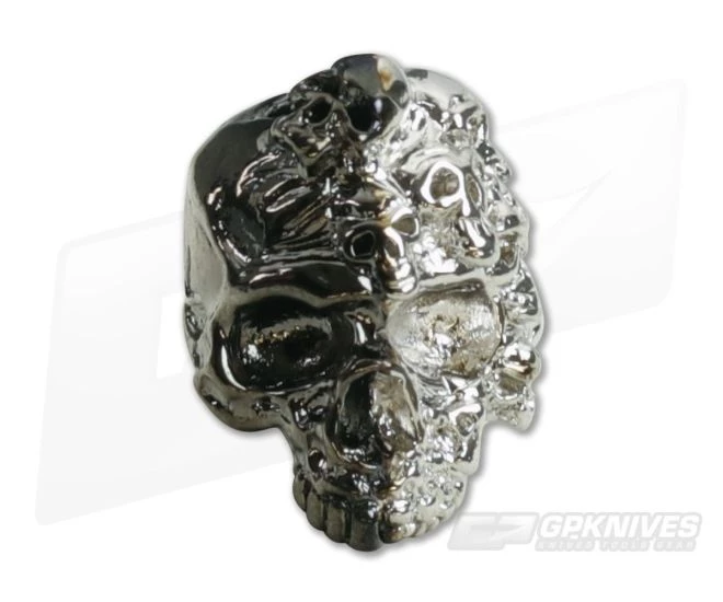 The Schmuckatelli Mind Skull Split Finish Bead is crafted from US made lead-free pewter that has been plated half with Hematite and half with Rhodium for a “Two-Face” look. Its the perfect addition to your EDC and measures approximately 1/2″W x 5/8″H x 5/8″D with a 3/16″ hole size to fit a double strand of 550 paracord and most accessory cords.
