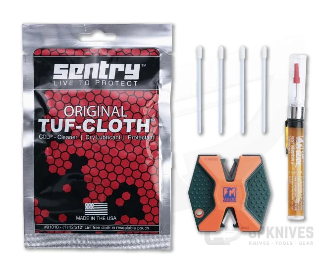 The Sentry Every Day Gear Care Kit is a compact, easy to carry mobile maintenance kit for your knives, tools and other equipment at home or in the field. Tuf-Glide micro-bonding lubricant/protectant/cleaner is quick drying and bonds to metal to provide superior rust prevention and lubrication. Stops rust, repels dirt. Tested and used by Navy SEALs.