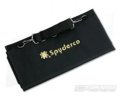 Spyderco Small Spyderpac to transport or display your Clip It collection. Small SpyderPac is made of heavy denier black nylon with crystal clear plastic viewing pockets. Velcro side closures and top flap. Adjustable should strap and embroidered gold Spyderco logo bug. Features 18 pockets each sized at 4.5″ x 2.5″.