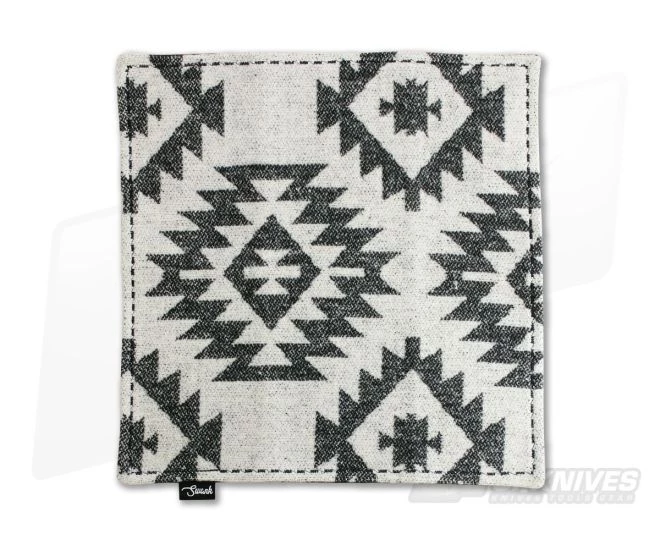 This premium, hand made hank from SwankHanks is made from an attractive “Blackfoot” pattern inspired by the blankets of the indigenous Blackfoot tribe of North America. It is backed with high quality black microsuede found on all Swank hanks. The polyester/cotton blend is durable with a soft, plush texture and decorative black stitching complementing the heather black and white pattern. The microfiber backing offers added utility for cleaning glasses, device screens or other items and features grey decorative stitching. A perfect lightweight edition to your every day carry.