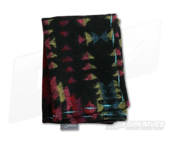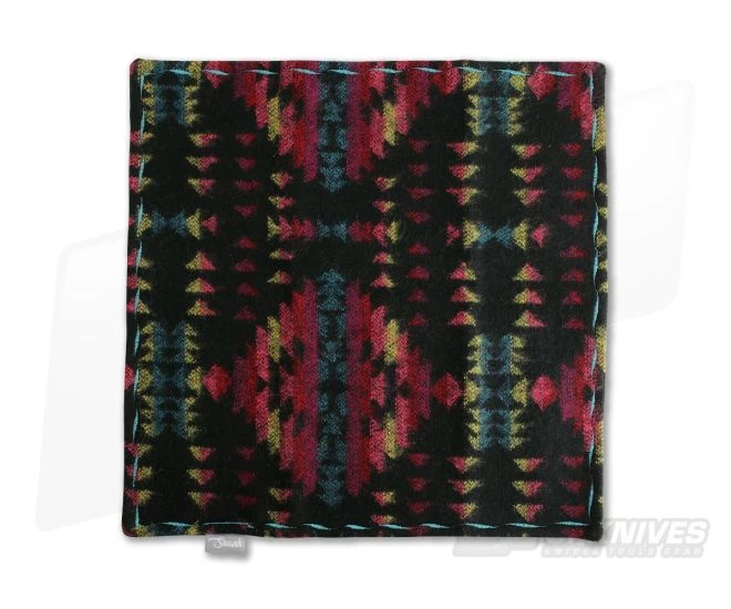 This premium, hand made hank from SwankHanks is made from an attractive “Chippewa” pattern inspired by the blankets of the indigenous Chippewa tribe of North America. It is backed with high quality black microsuede found on all Swank hanks. The wool/polyester blend is durable with a soft, plush texture and decorative teal stitching. The microfiber backing offers added utility for cleaning glasses, device screens or other items and features teal/red decorative stitching. A perfect lightweight edition to your every day carry.