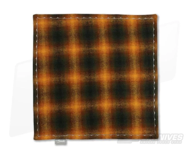 This premium, hand made hank from SwankHanks is made from “Lumberjack” flannel in a tartan-like pattern with a fall color pallet that shifts from black to light orange. It is backed with high quality black microsuede found on all Swank hanks. The cotton is durable with a soft, plush texture and the microfiber backing offers added utility for cleaning glasses, device screens or other items. A perfect lightweight edition to your every day carry.