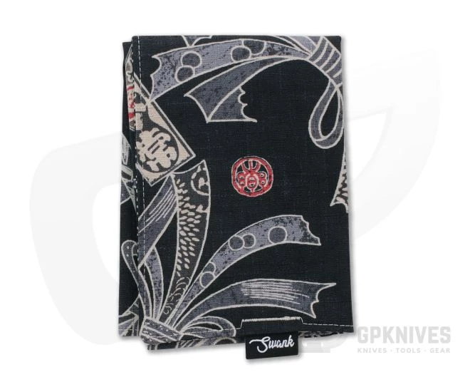 This premium, hand made hank from SwankHanks is made from quality Japanese dobby cotton on front and back. The front has a classic Tabane Noshi design with navy blue background while the back is an Uzumaki Spiral design. Dobby cotton is a woven fabric produced on the dobby loom, characterized by small geometric patterns and extra texture in the cloth. A perfect lightweight and durable addition to your every day carry.
