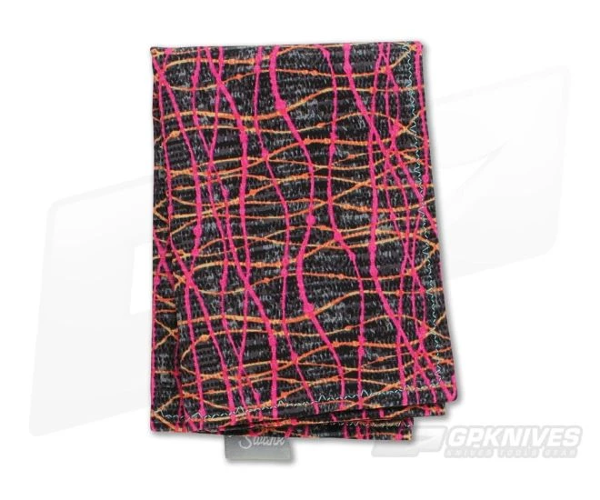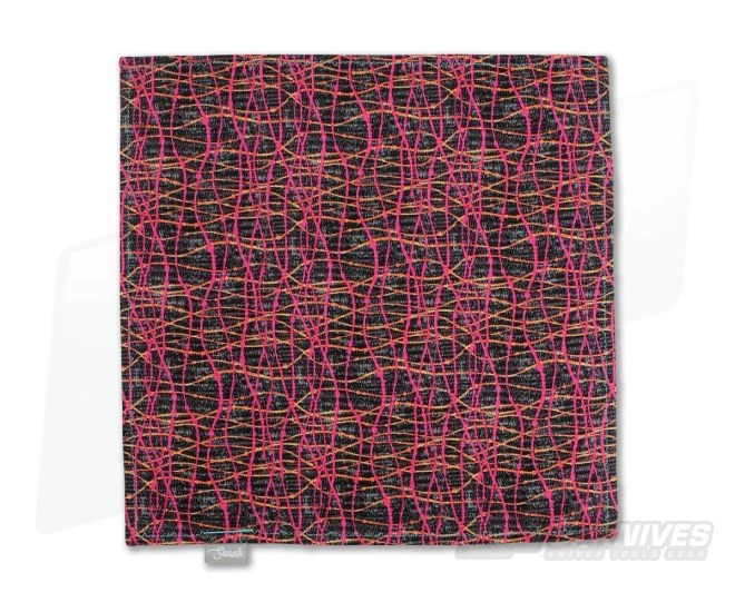 This premium, hand made hank from SwankHanks is made from exclusive, luxury Buttercup cotton in a funky and colorful “Plasma” Batik print and high quality black microsuede on the back. Contrast stitching on both sides gives an additional visual appeal. The cotton is durable yet soft to the touch and the microfiber backing offers added utility for cleaning glasses, device screens or other items. A perfect lightweight edition to your every day carry.