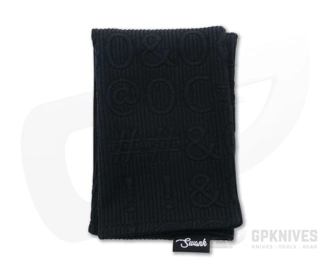 This premium, hand made hank from SwankHanks is made from quality embossed polyester on the front and a high quality black microsuede on the back. The front is durable with a heavily embossed texture with multiple strings of keyboard characters and black stitching on the front. The microfiber backing offers added utility for cleaning glasses, device screens or other items with contrast stitching. A perfect lightweight addition to your every day carry.