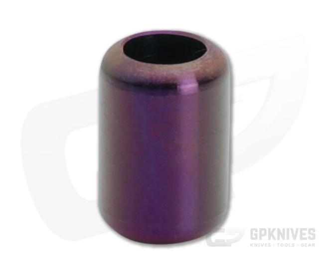 The Ti Survival grooveless titanium lanyard bead made by Esteban Acosta is a clean, smooth barrel bead for upgraded style on your EDC gear or zipper pull. This version has a purple anodized finish. 1/4 inch diameter lanyard hole.