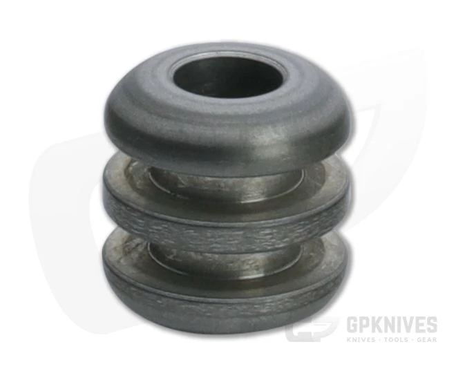 The Ti Survival three ribbed titanium lanyard bead made by Esteban Acosta makes an excellent addition to a knife or flashlight lanyard or for use as a zipper pull. The bead comes with a plain gray titanium finish. 1/4 inch diameter lanyard hole.