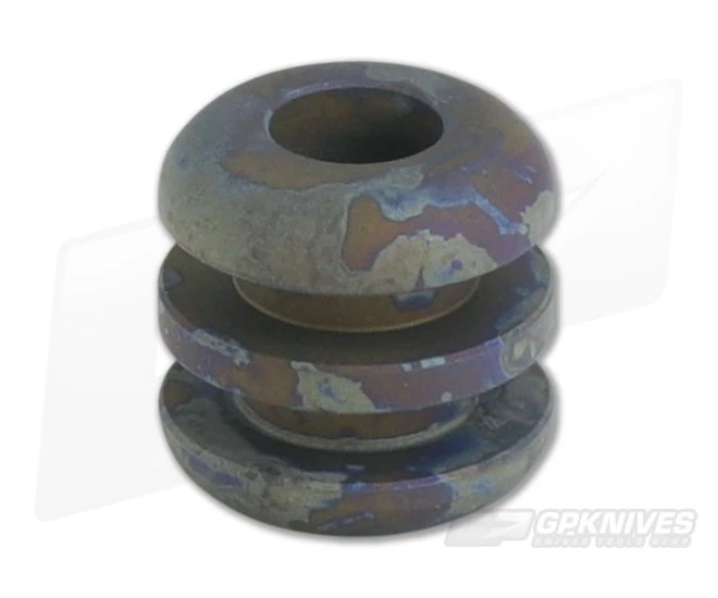 The Ti Survival three ribbed titanium lanyard bead made by Esteban Acosta makes an excellent addition to a knife or flashlight lanyard or for use as a zipper pull. The bead comes with a sandblasted body with Esteban’s “Blue Smoke” anodized finish. 1/4 inch diameter lanyard hole.