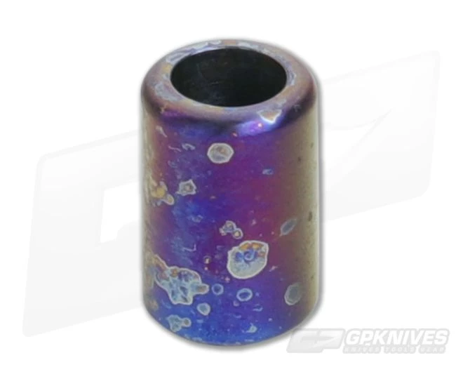 Ti Survival lanyard bead made by Esteban Acosta with a polished “grooveless” finish and “Blue Smoke” anodization. 1/4 inch diameter lanyard hole.
