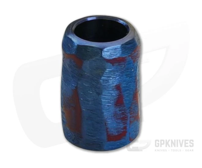 Ti Survival lanyard bead made by Esteban Acosta with blue and purple anodized body and textured finish. 1/4 inch diameter lanyard hole.