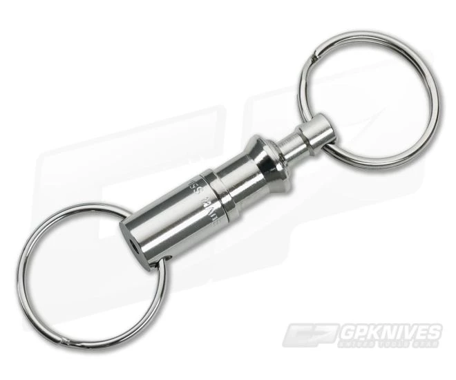 The Victorinox Keychain coupler is made from chrome plated brass and features a quick release mechanism that easily detaches the two main pieces of the body. Each segment is equipped with a stainless steel split ring for attachment of keys, pocket tools or other every day carry items.