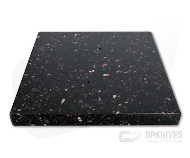 Wicked Edge solid Granite Base is sturdy and designed to keep the Wicked Edge sharpener perfectly steady while in use. This is natural, polished, solid granite and colors may vary based on supply. Four rubber feet in the corners provide stability and protect the surface it rests on. Holes in the base are countersunk and it attaches to the sharpener with two (2) 1.5″ 10-32 Flat Head Socket Cap Screws which are supplied with every sharpener.