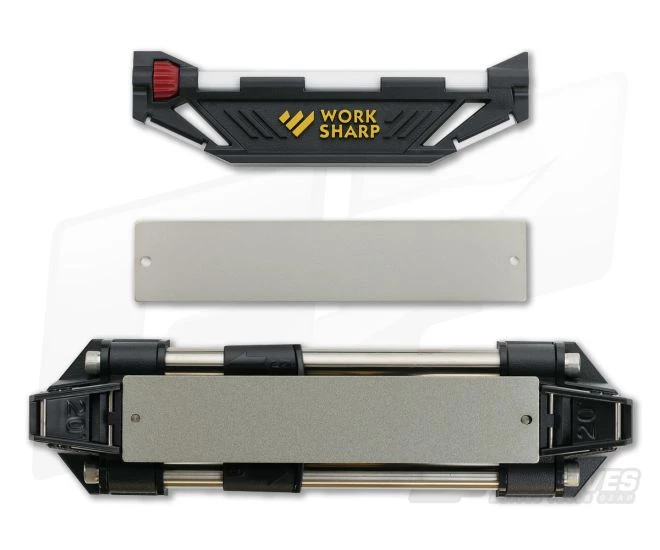 Designed and built in the USA by Work Sharp Knife & Tool Sharpeners, the Guided Sharpening System with Pivot-Response is the ultimate sharpening solution for every knife you own. This is the complete manual benchtop sharpening and honing system. Its innovative Pivot-Response System allows the abrasive to follow the curve of the blade while sharpening. Created with both novice and master sharpeners in mind. The skill is built into the tool. No jigs. No clamps. No nonsense.