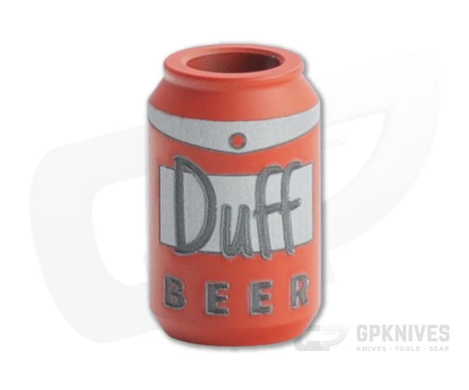 Upgrade your EDC style with the ZeroFeud Duff Beer bead. Designed to look like a can of the beer of choice for a certain iconic fictional character (D’oh!), this aluminum bead has a 1/4″ bore that fits two strands of mil-spec 550 paracord and an orange Cerakote coating with detailed laser engraved design. Includes ZeroFeud logo sticker.